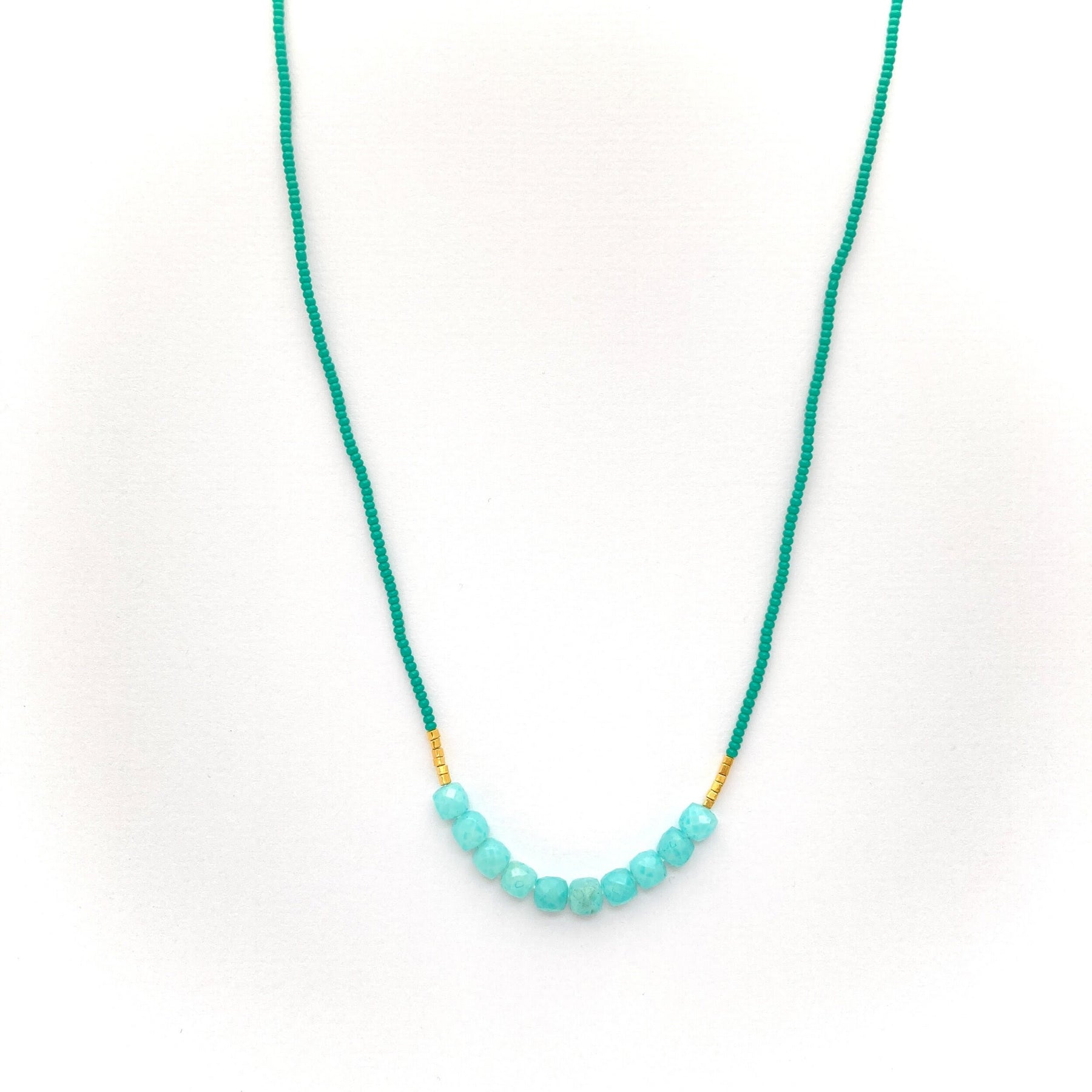 Jade seed with amazonite and gold vermeil beads