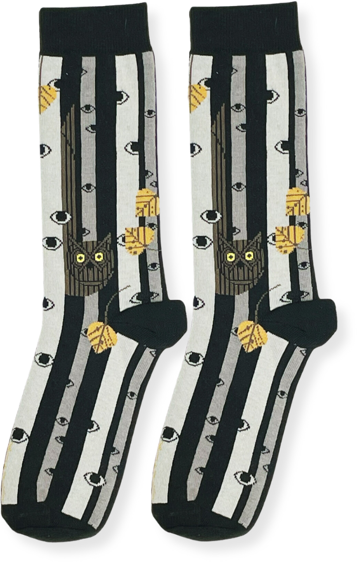 Introducing Charley Harper by Ozone Socks! Featuring Charley’s beloved Bark Eyes, this high-quality sock is made with long-fiber fair-trade cotton for more durability. They are sewn with the Pointed Toe technique, creating a more seamless appearance and less wear and tear.