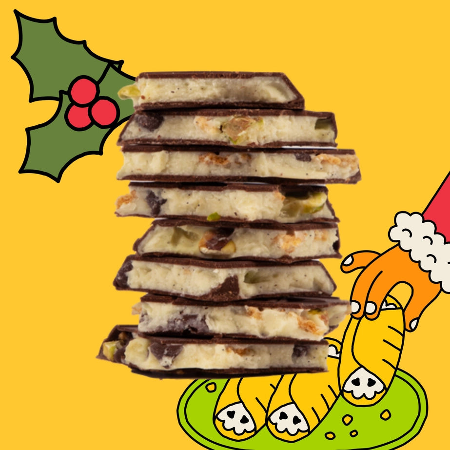 - Flavor: Dark chocolate with a white chocolate meltaway center, dotted with mini chocolate chips, crispy cannoli pieces, and a sprinkle of pistachios. All the flavor of the Italian bakery classic, with a little more sparkle and a lot more chocolate.