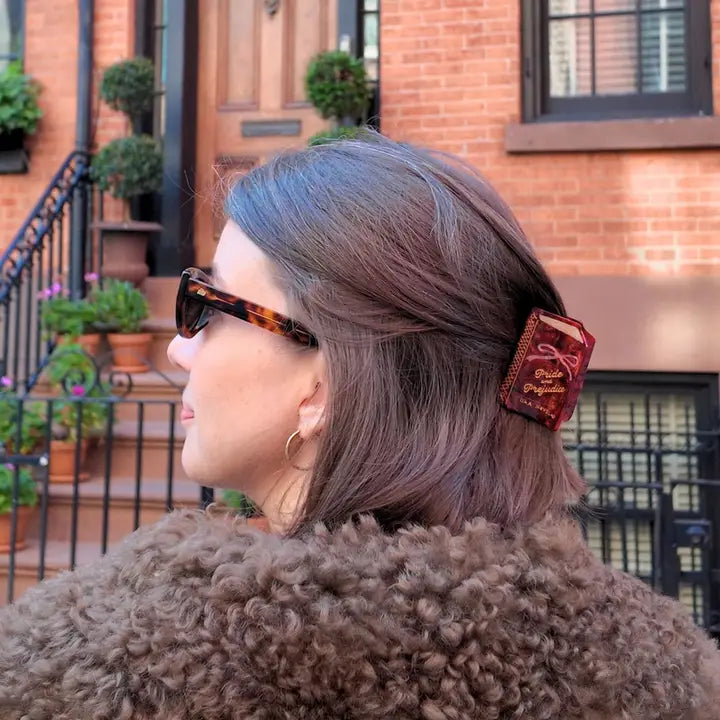 Brooding, romantic, and just the right amount of wild—the Mini Pride & Prejudice Book Claw Clip is a tribute to feminine power and main-character energy. Hand-painted on both sides and crafted from biodegradable acetate, this piece transforms a literary classic into a wearable collectible.