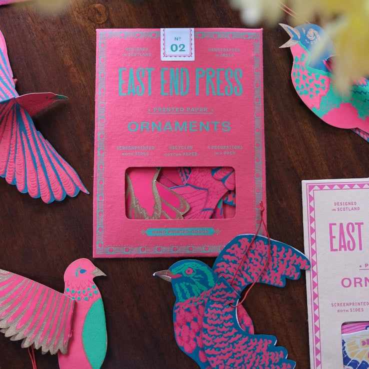 With four dazing, jewel colored birds, this set of paper decorations is inspired by colorful festive ornaments of years past.