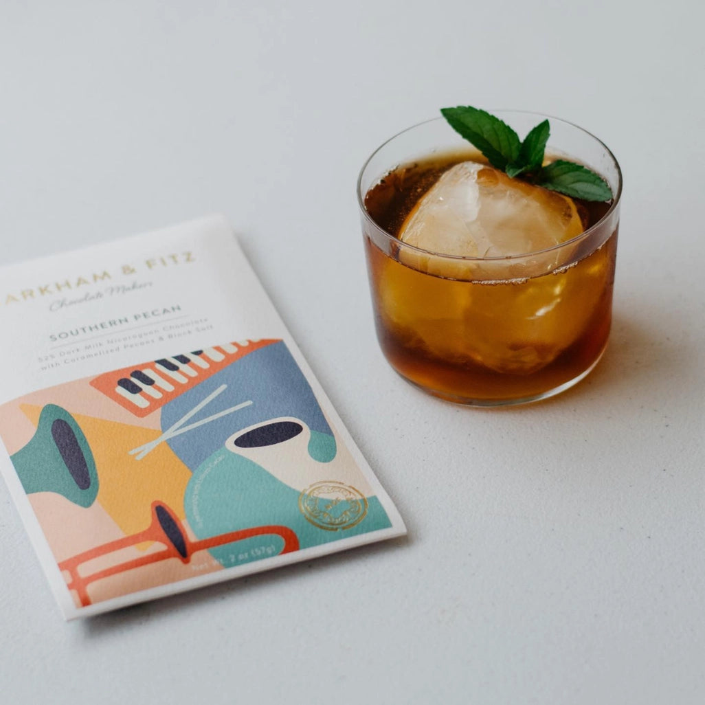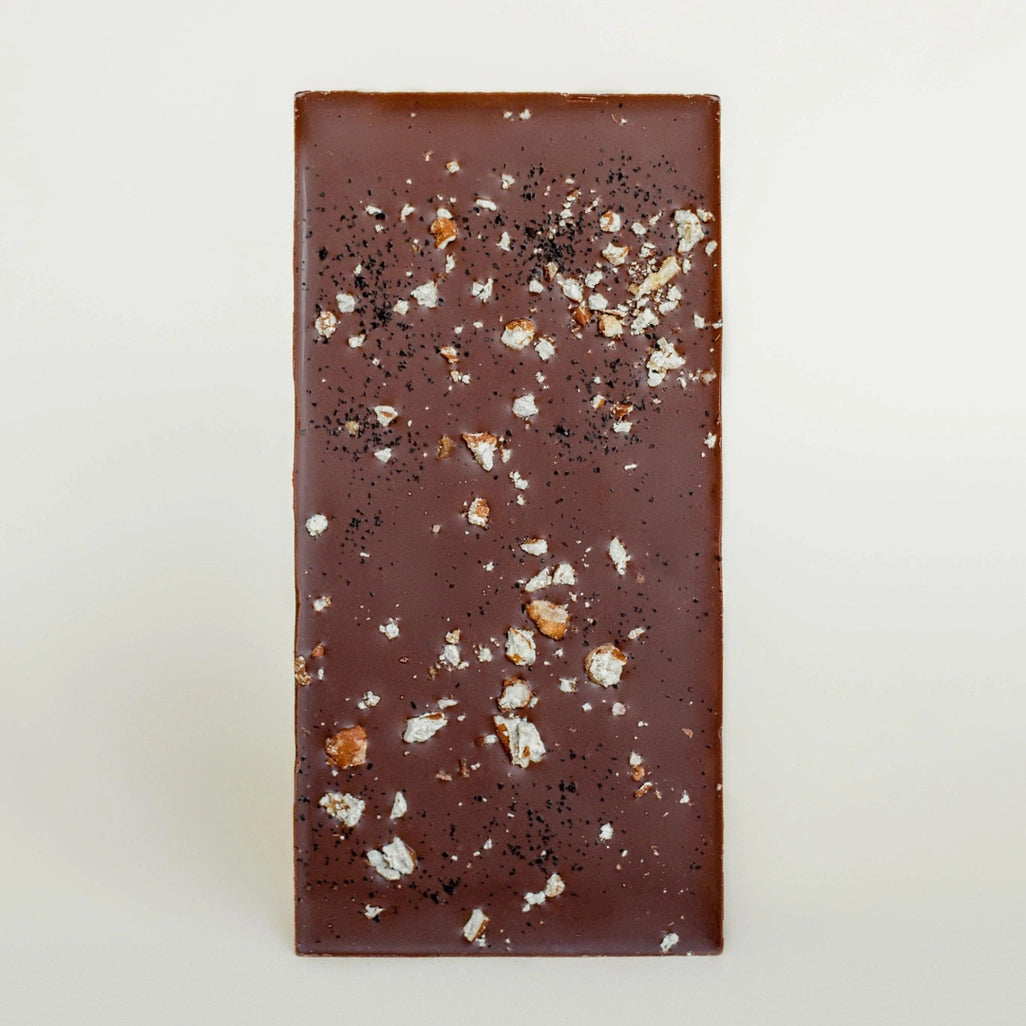 Upgrade your chocolate selection with this sophisticated Southern Pecan Nicaraguan Dark Milk Chocolate Bar. Crafted from 52% dark milk chocolate, it features caramelized pecans and a touch of black salt, blending creamy Nicaraguan cacao with a southern crunch for a refined finish.