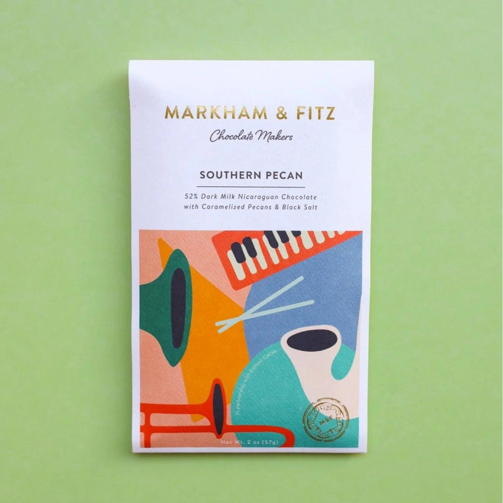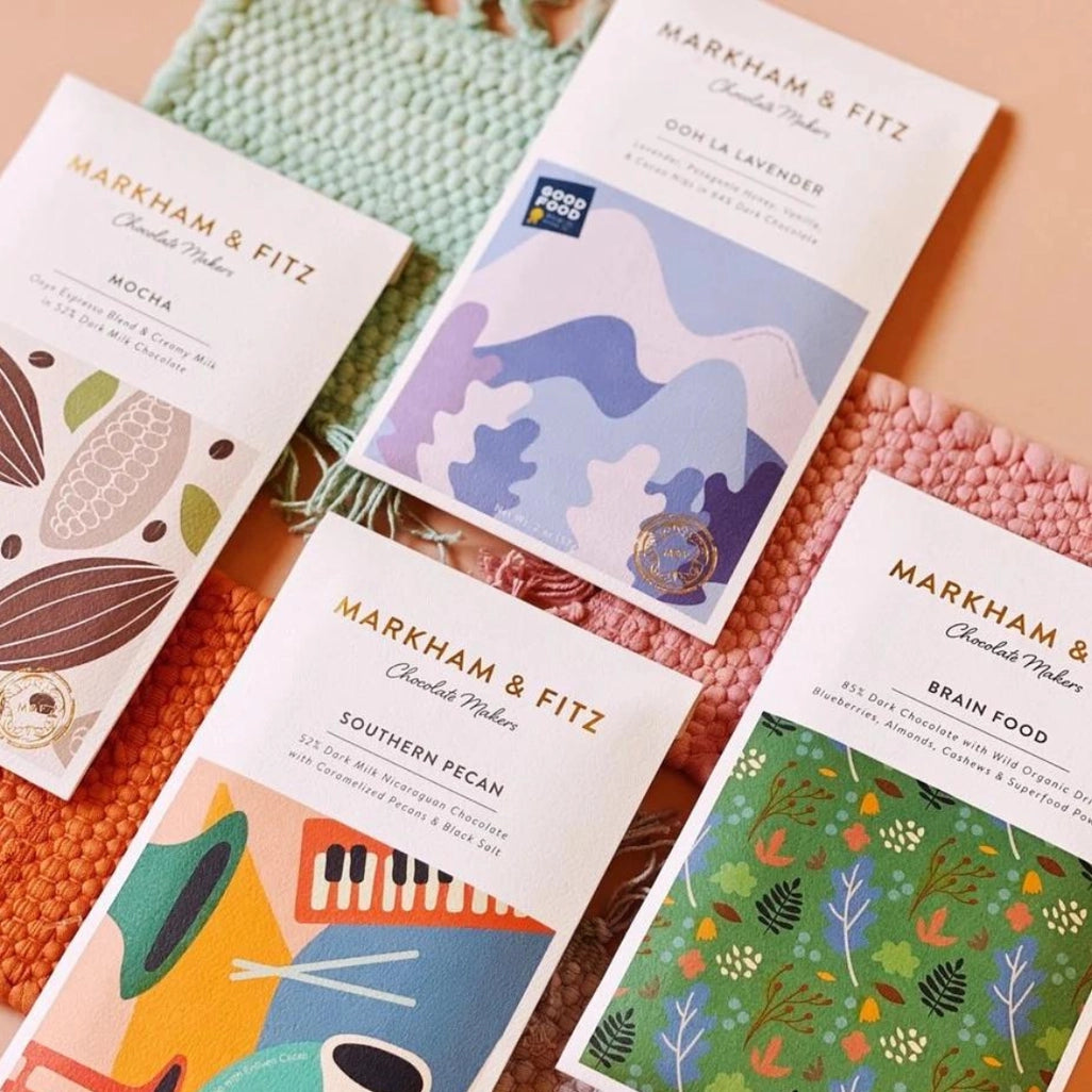 ABOUT MARKHAM AND FITZ: Inspired by international development, social impact, and just really good chocolate, a few University of Arkansas alumni pulled together their savings in 2014 to buy the first pieces of chocolate making equipment that would eventually become Markham & Fitz. We believed that a simple chocolate bar could make a world of a difference: with flavor for customers, and with higher wages for farmers. Markham & Fitz was founded on two principles: celebrating people and restoring the earth. From the beginning we've believed that even the smallest change can make lasting impact. From choosing to source cacao transparently, to prioritizing recyclable & compostable packaging, to integrating social impact and sustainability practices throughout the day to day, Markham & Fitz exists to celebrate people and make really good chocolate that leaves the planet better than we found it.