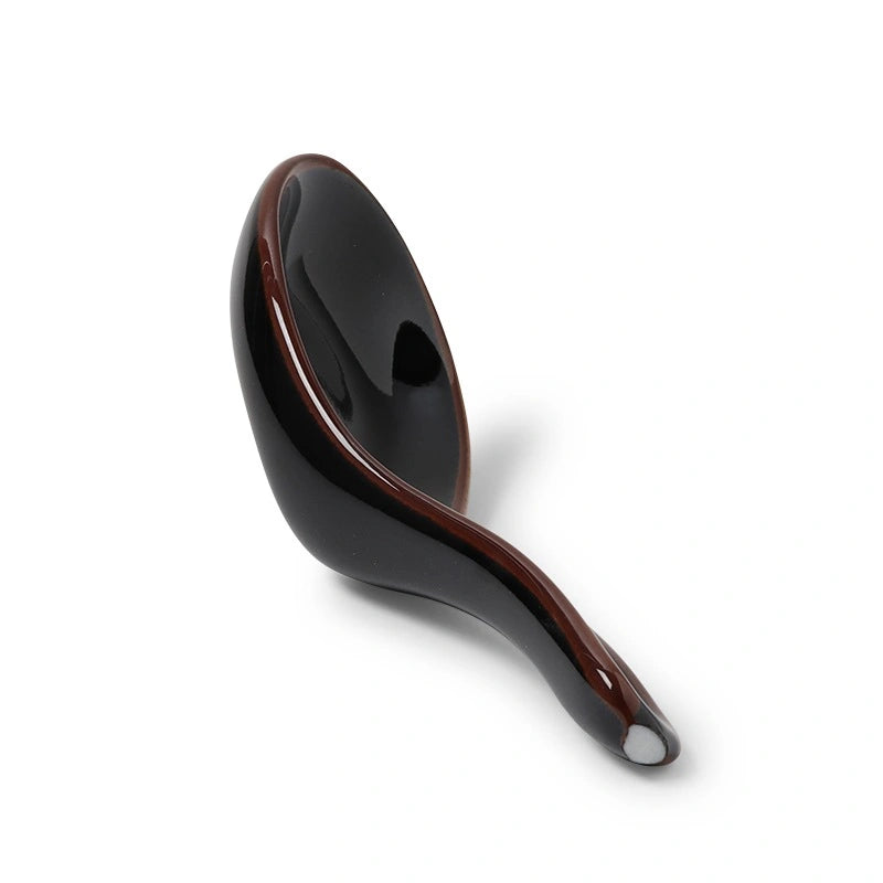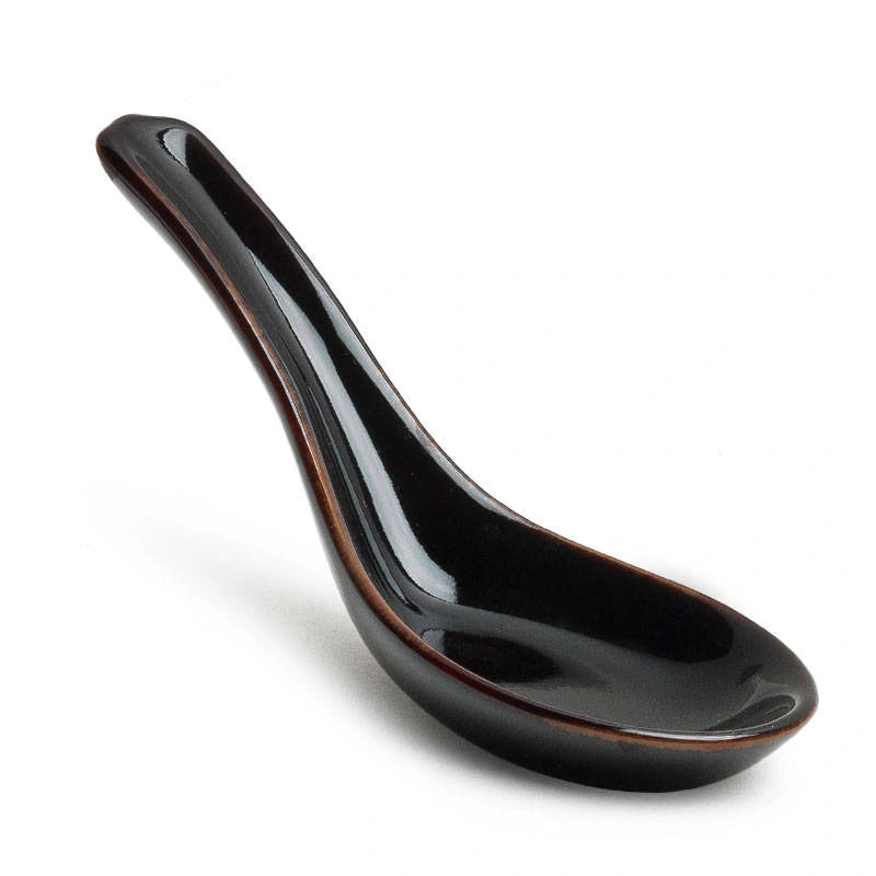 The perfect classic soup spoon in Tenmoku! Slurping is mandatory. Make an impression - line them up on a beautiful tray or serving platter and serve bite-sized appetizers on these spoons at your next cocktail party! Please note the base of the spoon does not have the same smooth glaze and may feel rougher in texture. One is meant to sip from the edge of the spoon.
