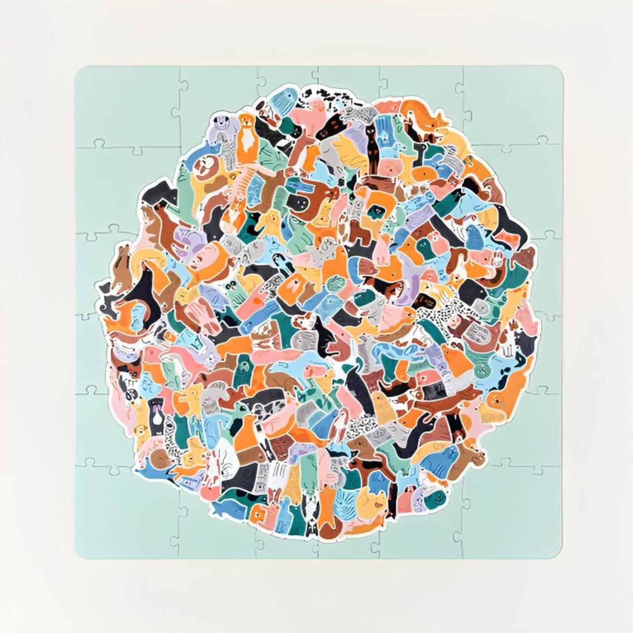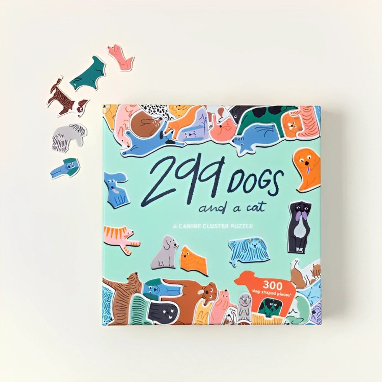 Contrary to what pop culture would have us believe, cats and dogs can be the best of friends. Just look at the fine feline in this puzzle—it simply loves hanging out with 299 of its closest canine buddies and is definitely not silently annoyed!