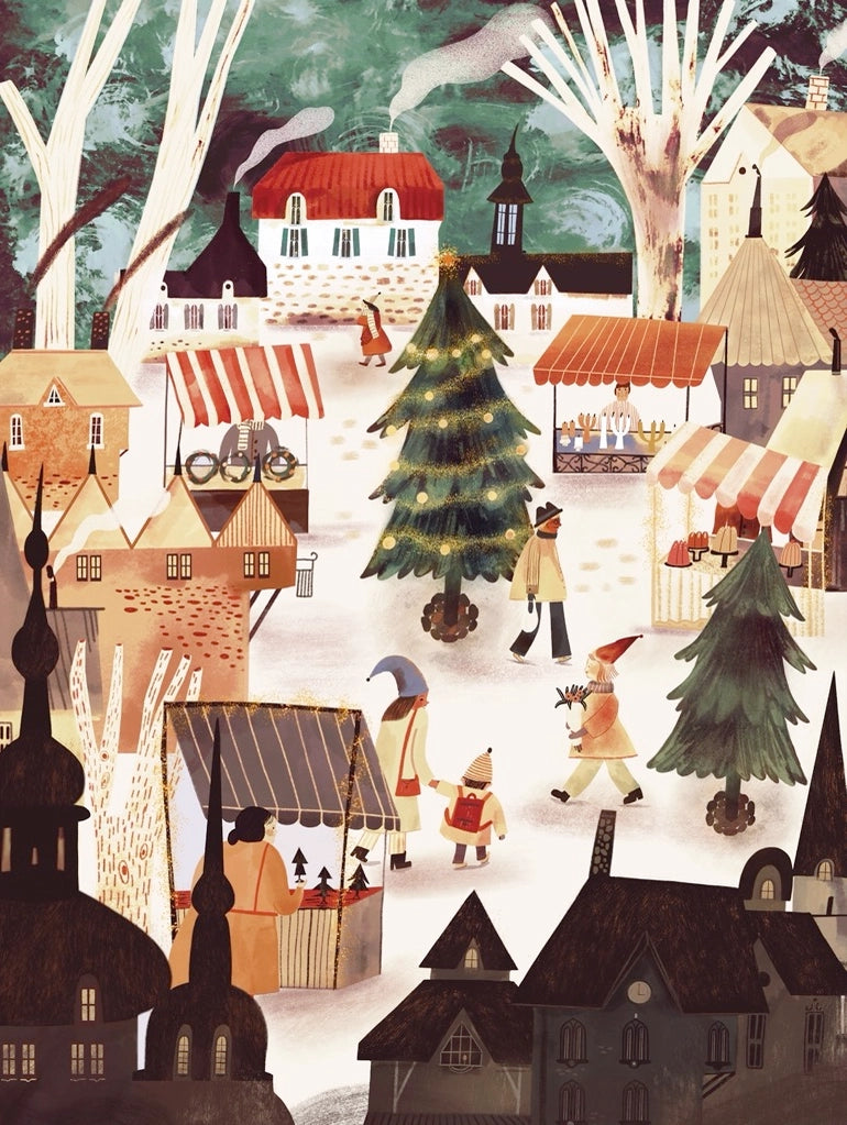 The Christmas market is bustling in this small town, with vendors offering the finest decorations to prepare for the festive holiday season. This puzzle is perfect to get into the Christmas spirit during the holiday season! Illustrated by Adelina Lirius, this 1000-piece puzzle is sure to bring joy to your holiday celebrations.