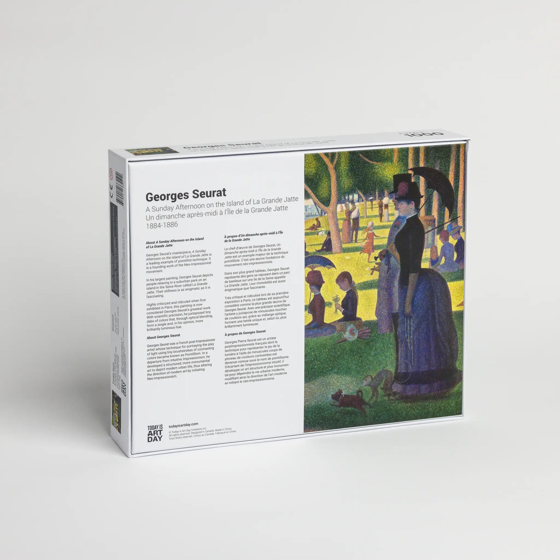 About A Sunday Afternoon on the Island of La Grande Jatte Georges Seurat's masterpiece is a leading example of pointillist technique. It is a founding work of the Neo-Impressionist movement. In his largest painting, Georges Seurat depicts people relaxing in a suburban park on an island in the Seine River called La Grande Jatte. Their stillness is as enigmatic as it is fascinating.
