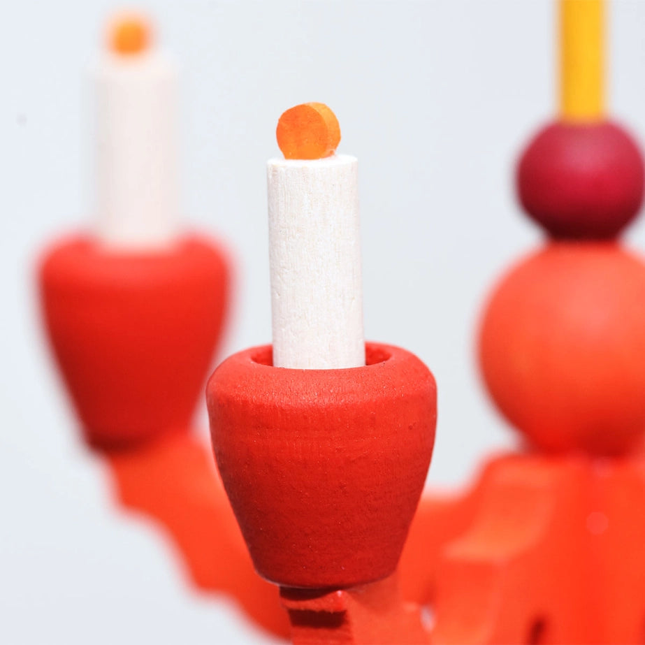 The candlestick chandelier shines colorful on the festively decorated Christmas tree. The pendant is finished with a red thread for hanging. You will receive an original miniature directly from the Ore Mountains.