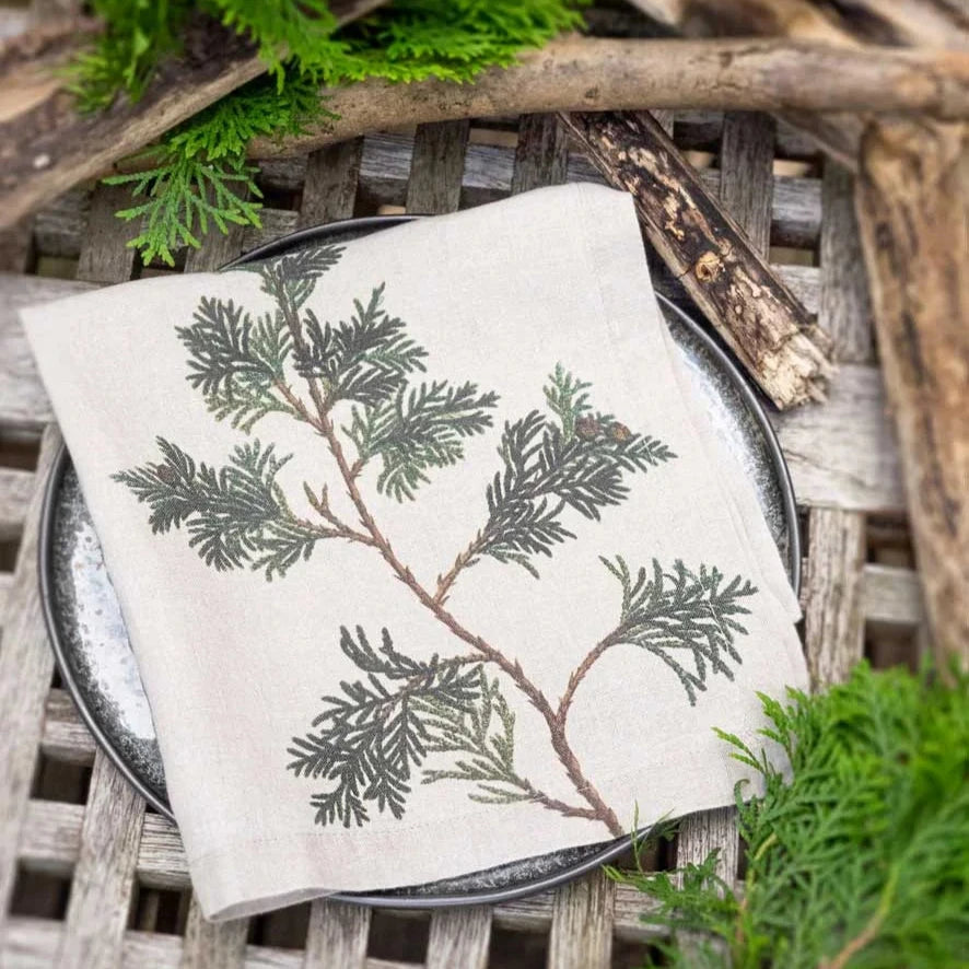 The lush green colour of CONIFER Trees linen napkins will bring tranquillity and freshness to your table. The LINOROOM brand uniqueness is that napkin sets are composed of 6 different designs, which makes any table setting exciting and leaves guests surprised to have their own personal serviette! The set includes 6 different designs of the most conifers.
