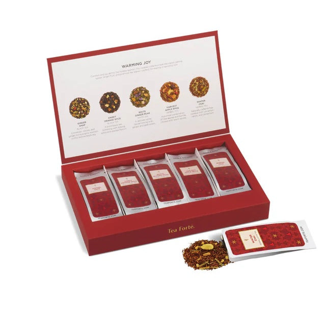 Make loose tea steeping simple with the Warming Joy Single Steeps Sampler. Each box includes 15 single-serve loose tea pouches, perfectly portioned for a 12-ounce cup.