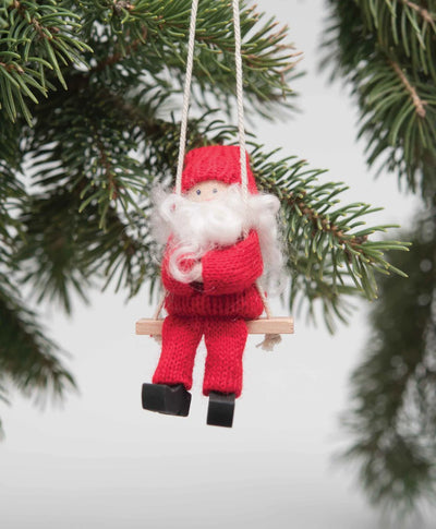 Tomte Boy on Swing, Wooden Ornament from Sweden