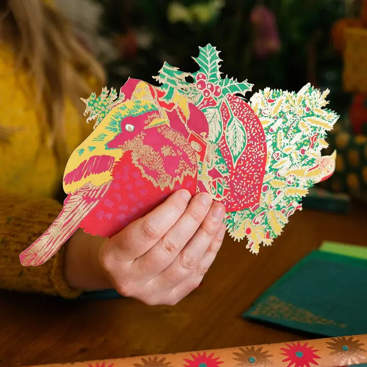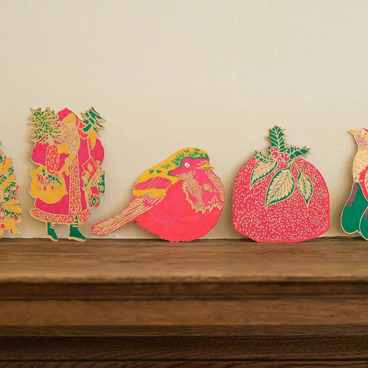 Beautifully screen-printed festive greeting cards, perfect for wishing loved ones a Merry Christmas.