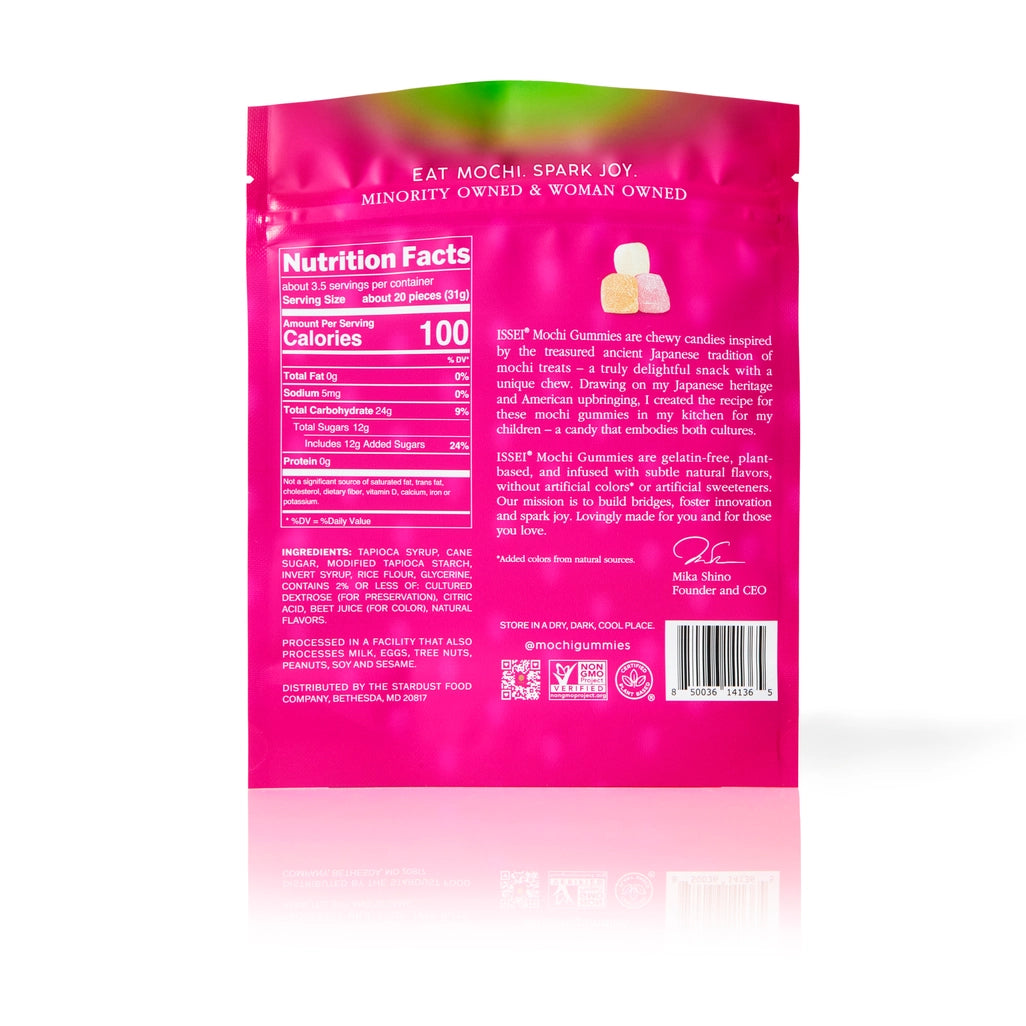 Mochi Gummies began as a simple homemade snack that Mika Shino was making for her kids and friends. Weary of the various gummy snacks and candies her children were often asking for, Mika sought to create a snack that did not have excessive sugar, artificial flavors, chemical stabilizers, and animal products. So she created a simple, pure, and natural snack - small bite-sized versions of the mochi desserts she grew up within Japan. Her kids loved it. Their friends loved it. And Mochi Gummies were born.