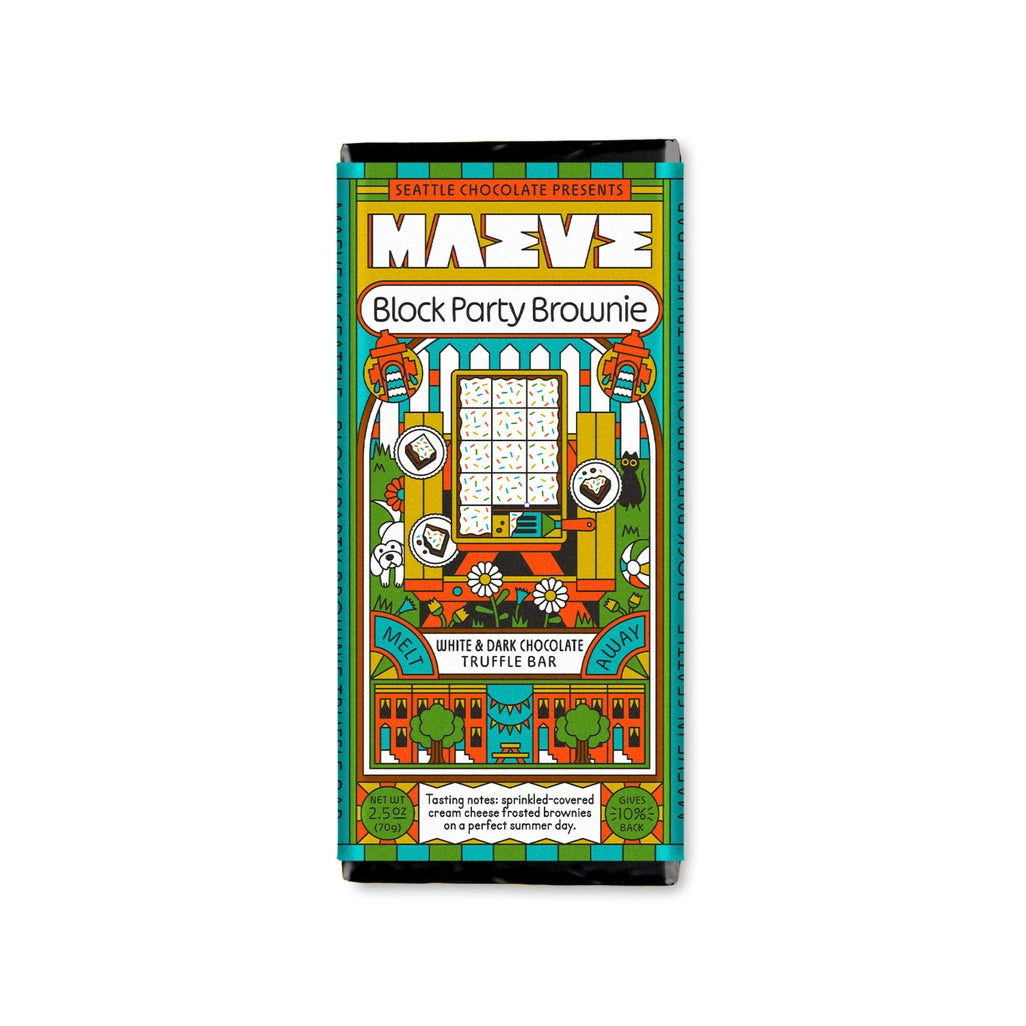 - Flavor: White chocolate top layer, fudgy dark chocolate center generously sprinkled with confetti, and all natural flavor.