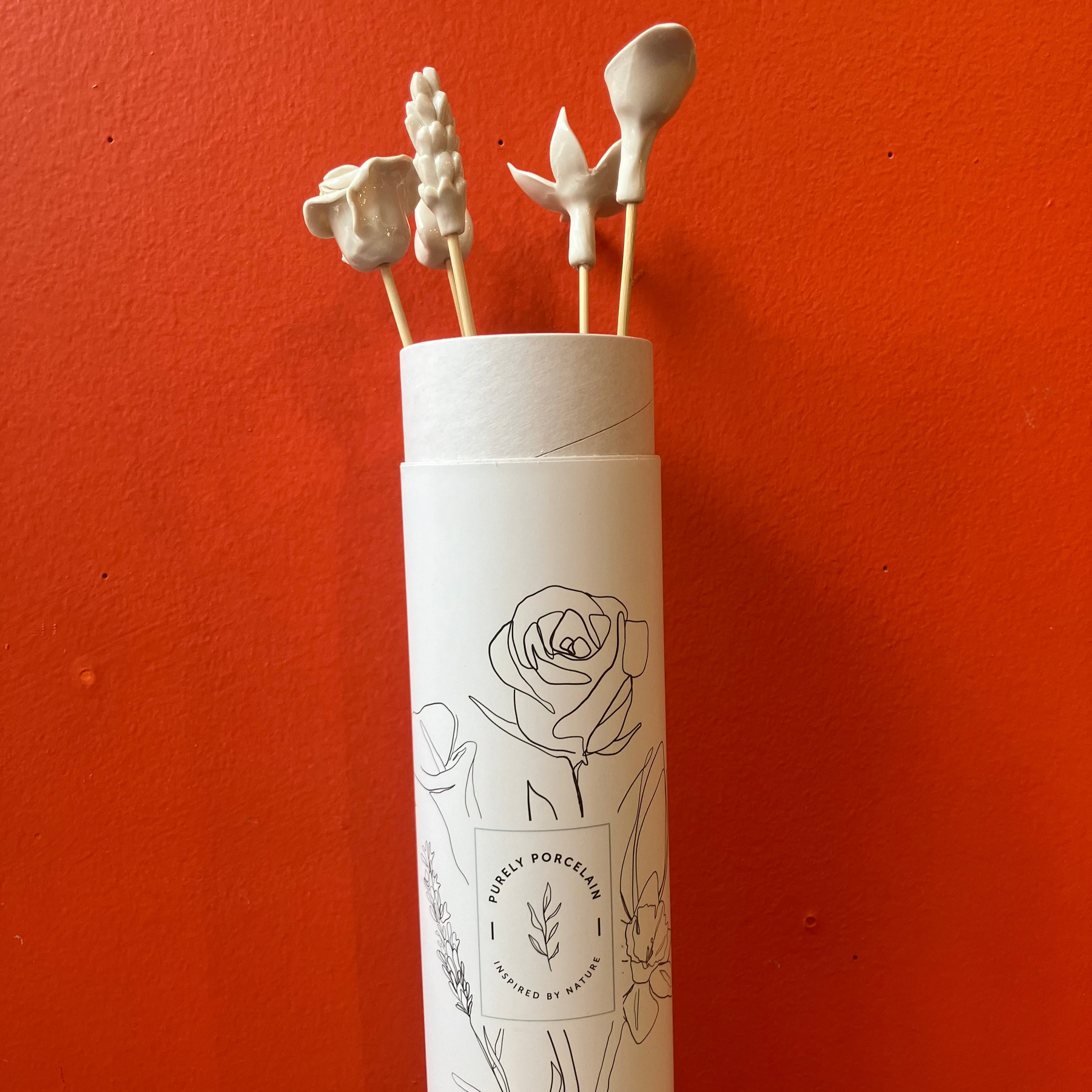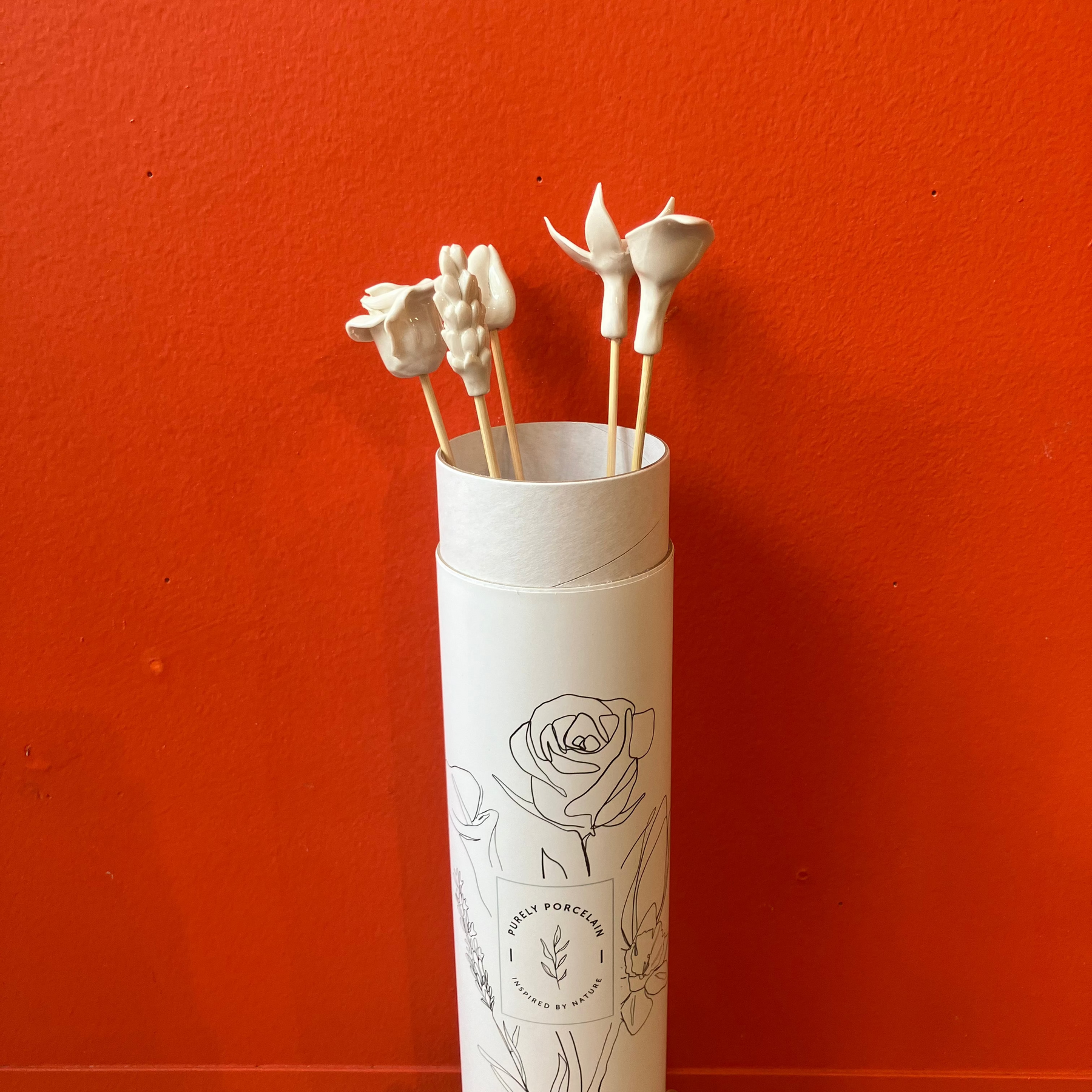 Porcelain Flower: flowers are all hand sculpted porcelain mounted on bamboo, becoming a delightful reusable addition to any room diffuser. Use the bamboo reed as a diffuser reed.