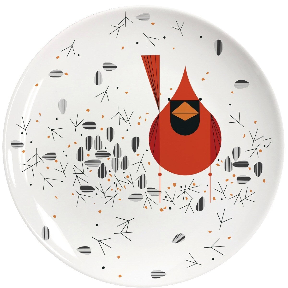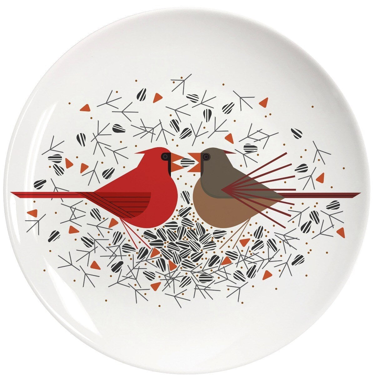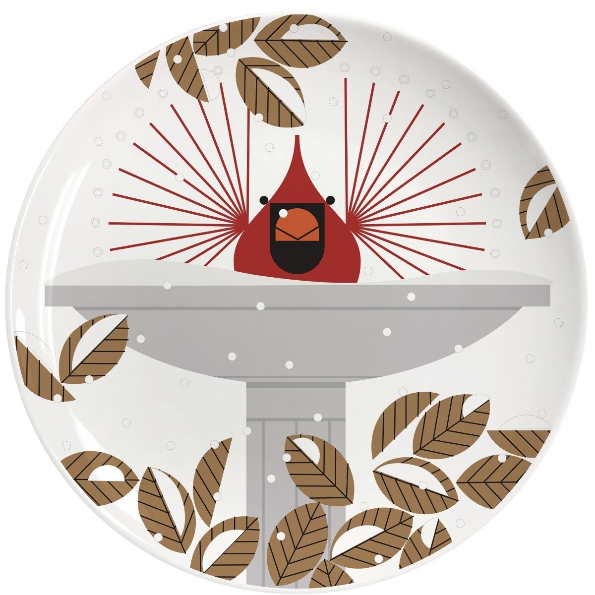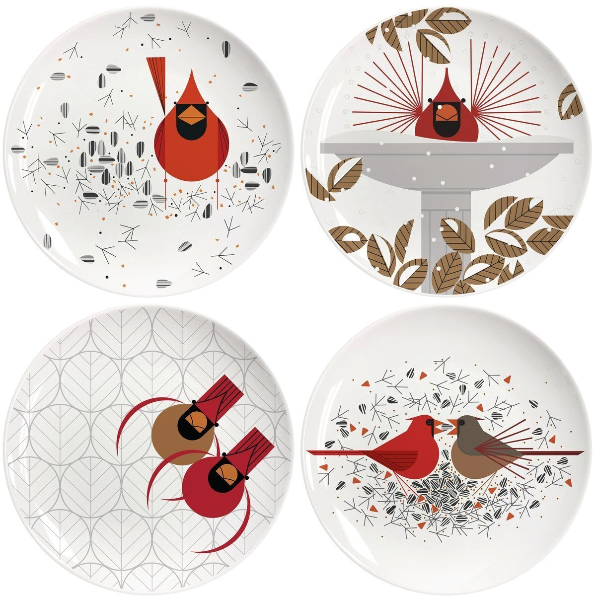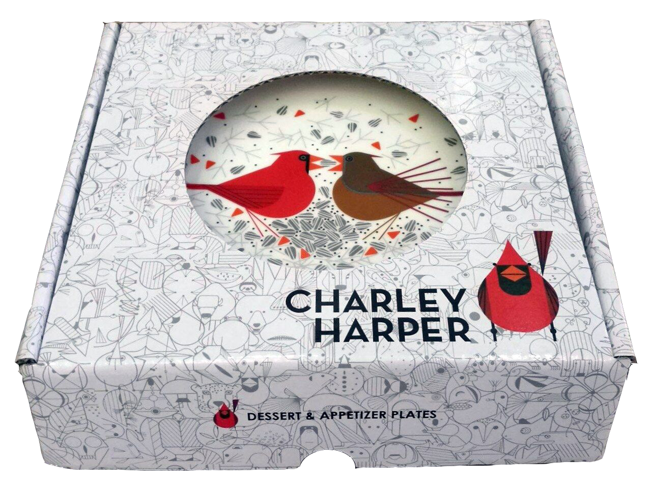 From tapas parties to casual dinners with friends, these brand-new appetizer and dessert plates from the Charley Harper Art Studio let you serve small bites in style! This set of four dessert and appetizer plates features Charley Harper’s most iconic subject: the cardinal. Four different images of cardinals from the archives compose the set: Cardinal and Seed (1960), Brrrdbath (1986), Cardinal Courtship (1992), and Cardinal Couple (2005).