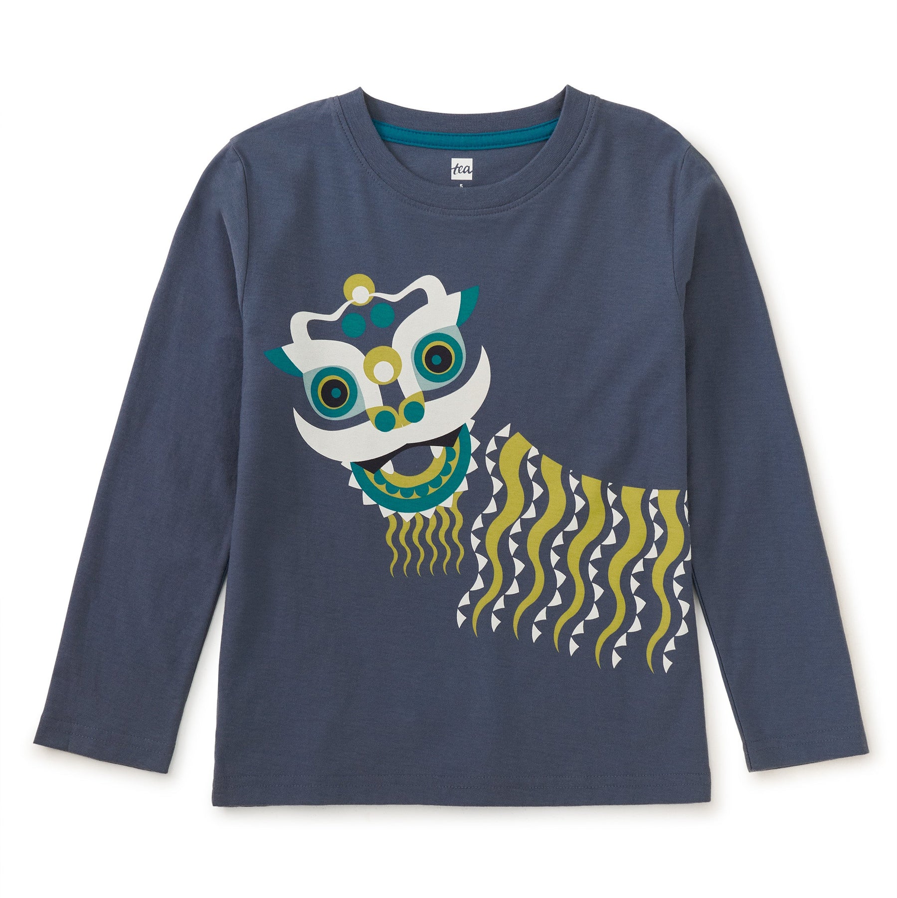 Celebrate the Lunar New Year in style with this double-sided tee on a rich blue background. Featuring a vibrant lion dance costume to bring good luck and fortune, this festive design is perfect for New Year celebrations and beyond.