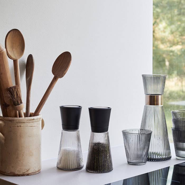 Beautiful, high-quality glass, an elegant, dark grey color, a durable and functional top in black plastic and patinated steel, the Grand Cru Nouveau Grinder measures 6.7" in height. Blown glass, an elegant smokey color, a patinated steel band and minimalist grooves. Grand Cru Nouveau is a modern and stylish evolution of the iconic Grand Cru products found in many homes around the world.