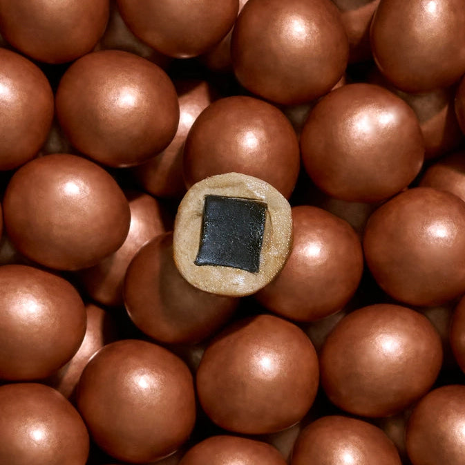 It is hard to imagine a more winning combination than when sweet liquorice meets soft dulce chocolate. Now add a grain of crispy flakes of sea salt just to tickle your taste buds. No wonder this became a true CLASSIC CARAMEL.