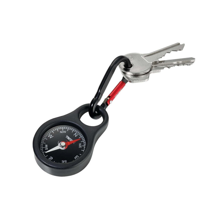 Troika Pocket Compass with Carabiner in a protective rubber casing Troika knows that adventurers have a lot on their mind: staying on course, providing orientation, and knowing which direction to go. Troika's "Wegweiser" Pocket Compass is the companion tool you can rely on; with its anti-slip soft grip cover, strong carabiner, and clear display, you'll have no trouble navigating the urban jungle or wilderness.