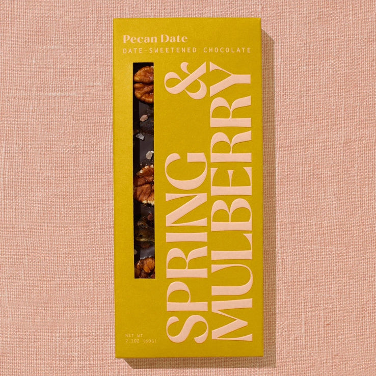 About: Spring & Mulberry is transforming America's relationship with sugar by showcasing the beauty and pleasure of whole, naturally sweet, fantastic-for-you ingredients - jammy dates, floral pollens, rich cacaos, and tangy spices. The dates used to sweeten their chocolate are a particularly powerful ingredient, delivering both flavor and nutrition.