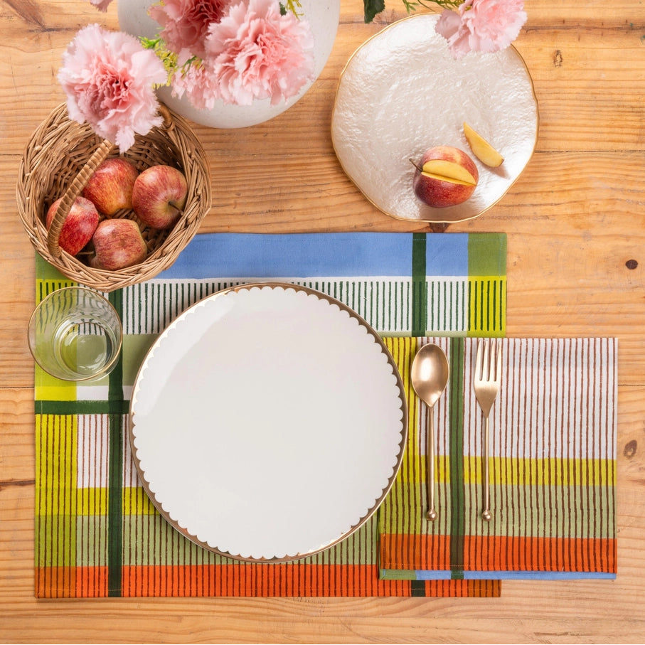 Add a touch of contemporary charm with our modernist striped placemat. Featuring bold, clean lines, it seamlessly blends style and practicality. Made from durable, easy-to-maintain cotton, it's perfect for everyday meals and special gatherings alike.