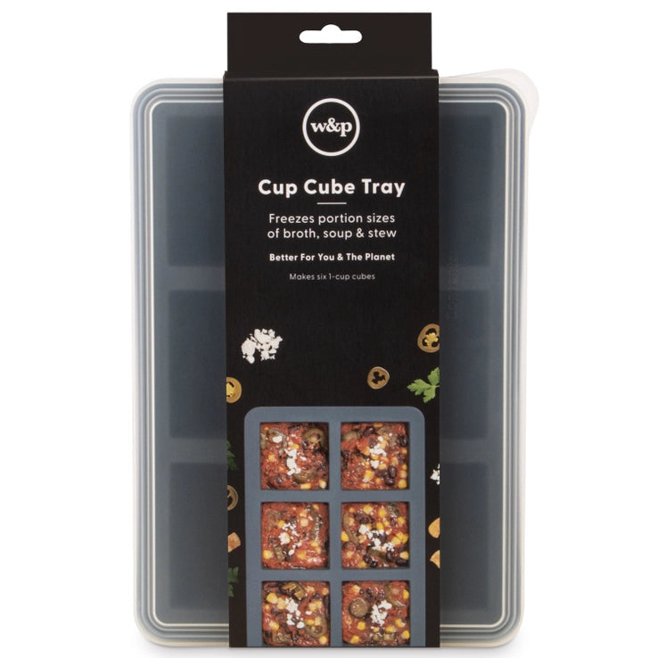 The Cup Cubes Freezer Tray makes perfectly portioned, 8 oz cubes so you can freeze serving-size cups of soups, broths, baby food, and more. Made from food-safe silicone and thoughtfully designed with a steel-rimmed frame, snap-on lid, and independent cubes for easy pop-out of a single cube, the Cup Cubes Freezer Tray is your new favorite kitchen tool.