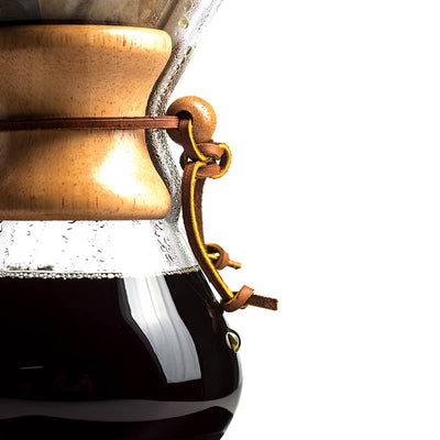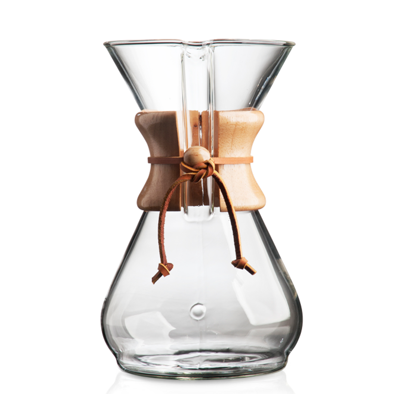 - CHEMEX pour-over allows coffee to be covered and refrigerated for reheating without losing flavor