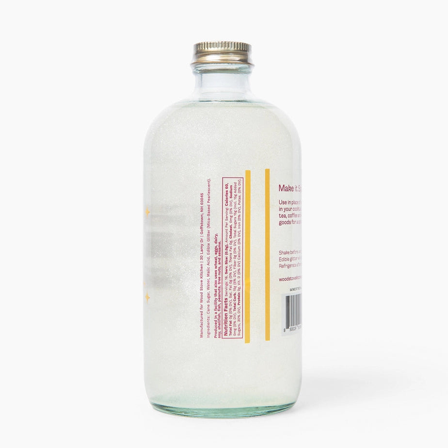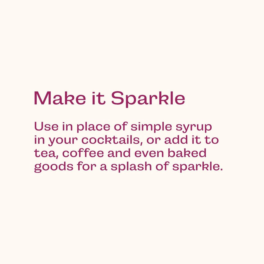 These 16 fl oz glass bottles contain a rich simple syrup infused with FDA-approved edible glitter (made out of the mineral mica, not micro-plastics or anything bad). The glitter swirls around the bottles and will make a great addition to everyone's cocktail cart or coffee station. It's great with cocktail, mocktails, iced tea, hot tea, coffee, and more. We love to add it to our margaritas with some fresh lime juice as well as to old fasioneds and mojitos.
