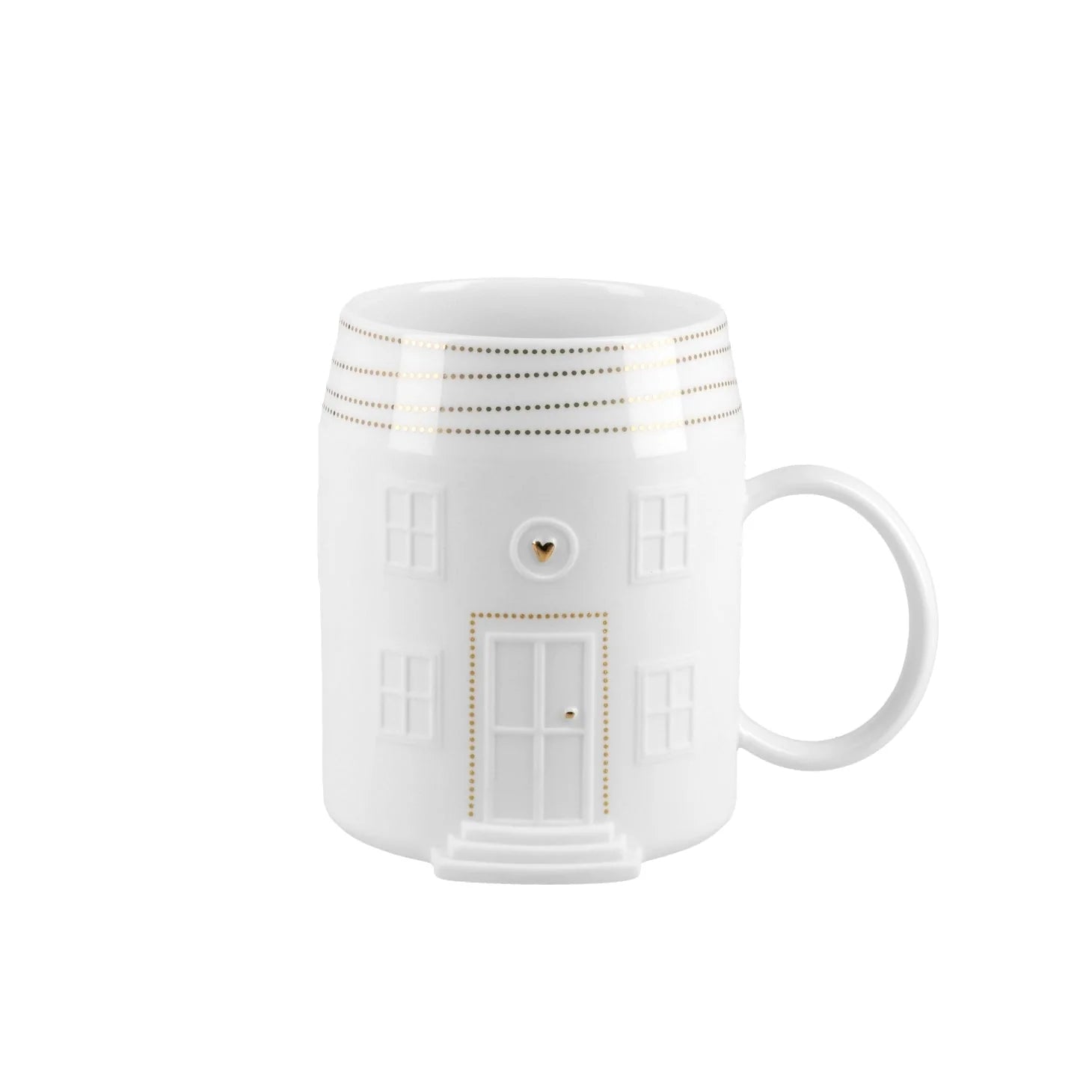 Village House Mug is the coziest way to serve your wintertime hot beverages. The beautiful porcelain mugs with embossing and gold detail are perfect for quiet evenings at home or holiday entertaining. Hand wash only due to gold detailing.