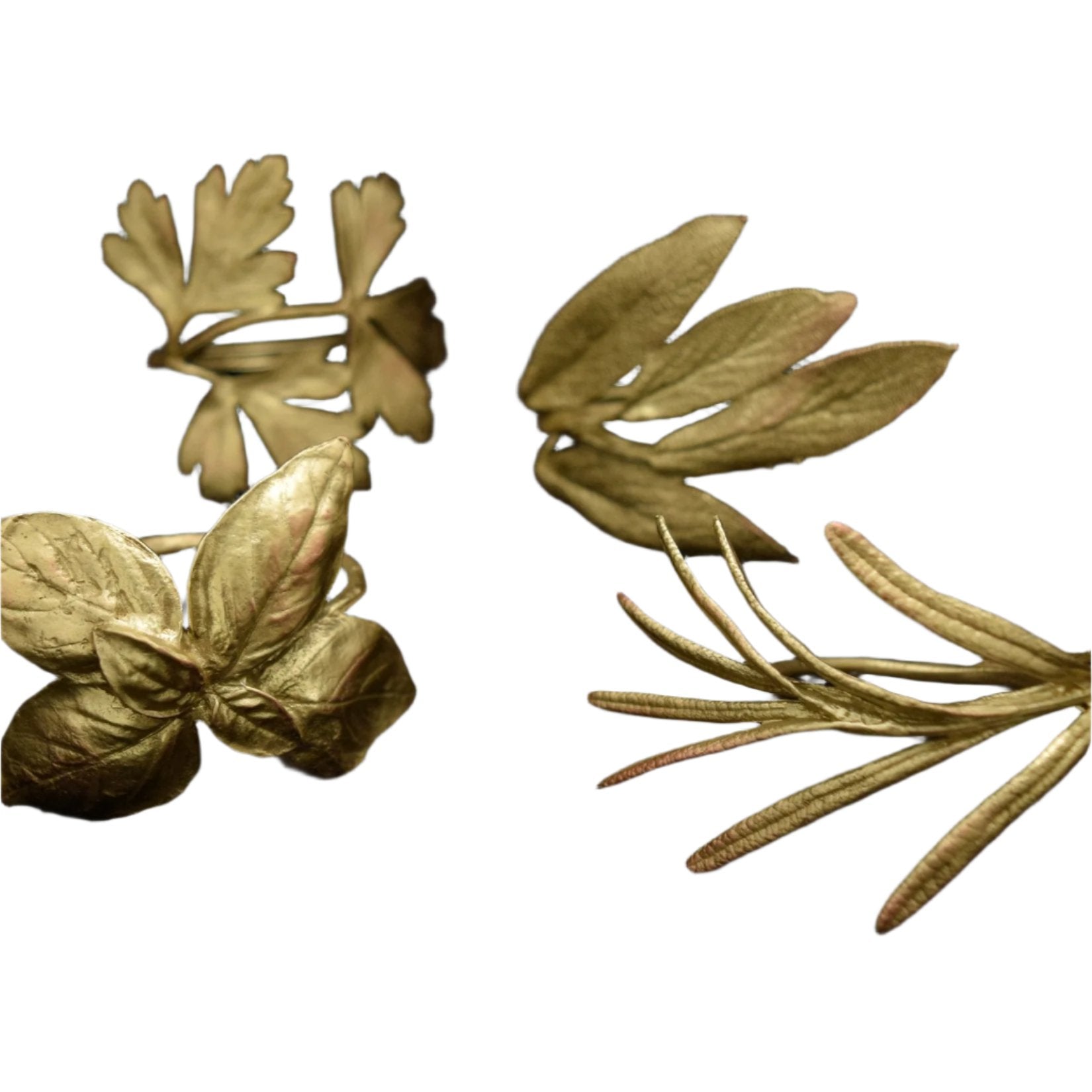 Italian Herb Napkin Rings, Set of 4 in Bronze.