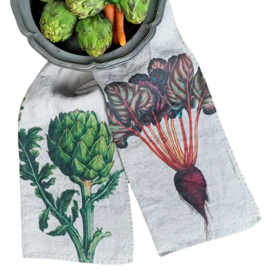 Fresh and crispy looking Artichoke & Beetroot linen kitchen towels will bring a farmhouse to your kitchen. They are perfect for seasonally redecorating your kitchen!