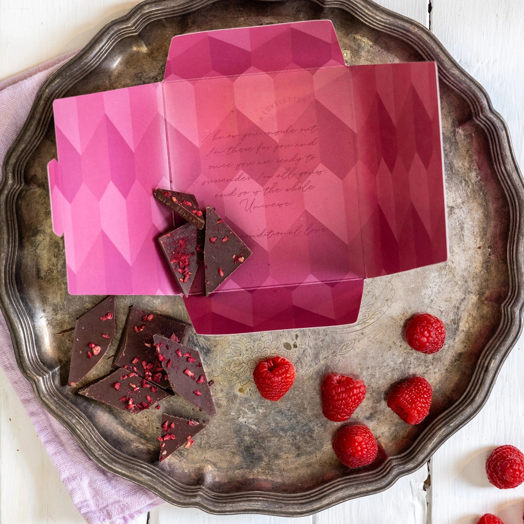 Every moment is special – and made even more so when you savor it with some single-origin craft chocolate with organic raspberries. Feel the love.